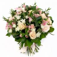 Нежный букет «Карамелька», в котором сочетаются только светлые тона цветов, вызовет восторг у всех. Композиция из одноголовых и кустовых роз покажет чистоту намерений, отсутствие корысти. А альстрамерии сделают подарок ненавязчивым и не вызывающим ни грамма смущения. Букет отлично подойдет коллеге по работе или другу по любому поводу.